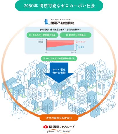 関電不動産開発は、関西電力グループの一員として「関西電力グループ環境方針」に基づき環境問題への取組みの継続的な推進に努め、持続可能な未来を目指しゼロカーボンに貢献します。